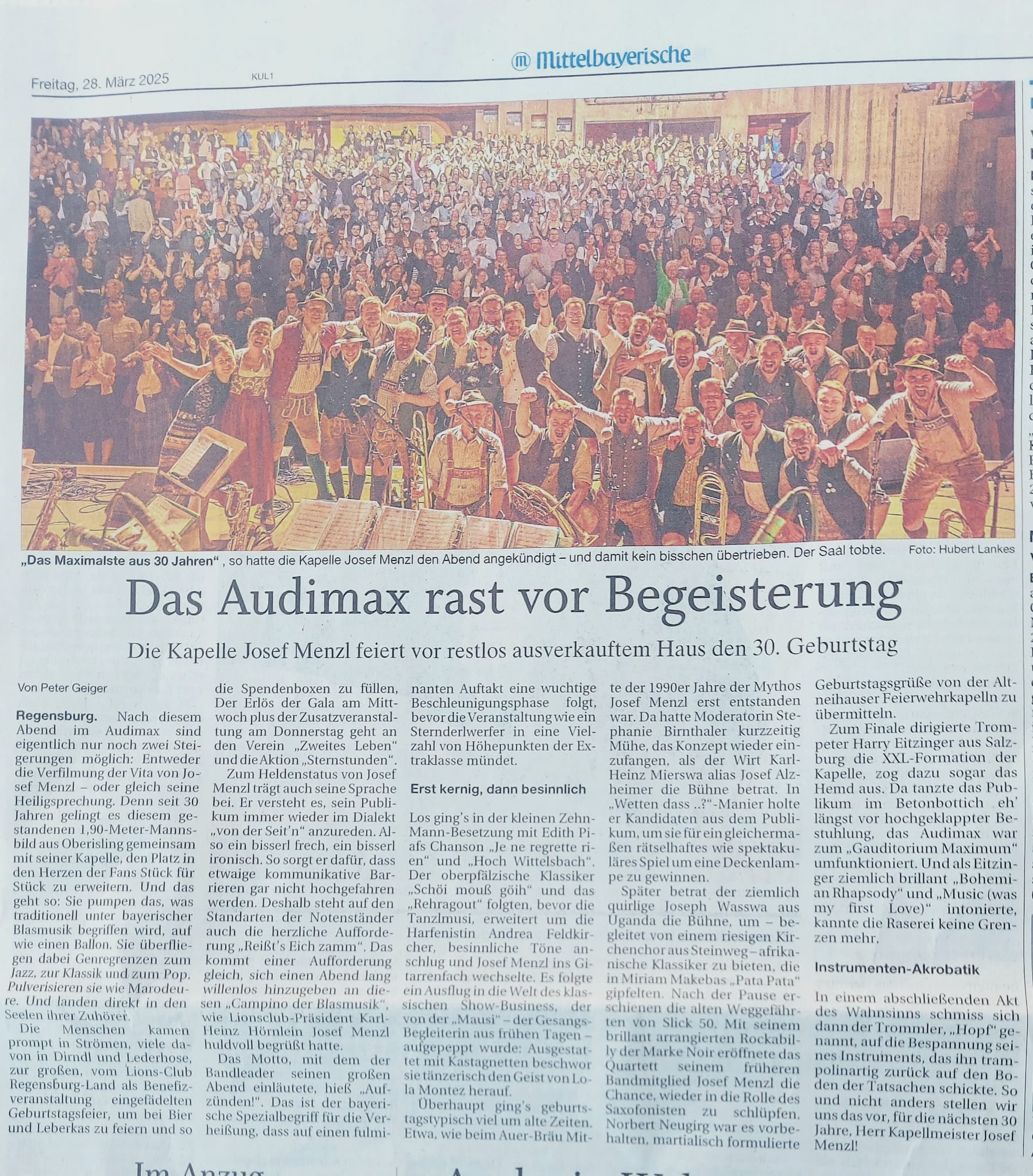 Am 26. und 27. März feierte die Kapelle Josef Menzl im vollen Audimax der Uni Regensburg ihr 30 jähriges Bestehen, bei dem auch der Himbisa-Mukama-Chor unter Leitung von Dr. Joseph Wasswa teilnehmen durfte.